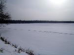 Log Cabin, Frozen Lake,