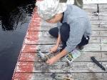 | Changing a flat on the trailer makes for a late camp set up, yet the scouts were early riser for the fish and breakfast |