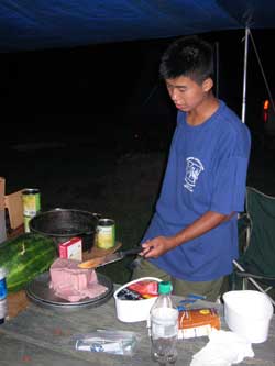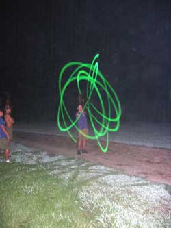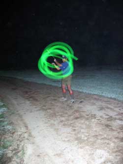 | Some late night amusement with glow sticks. Also, the daily ritual of breaking camp, eating breakfast, and packing the vehicles. |