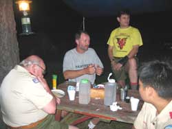 | Day 12 - Continued - Rocky Mount, NC The main purpose of this stop is to reminisce with Charlie an alumni of Troop 17 from the 60's - 70's. He is working with Troop 5 of Rocky Mount, NC. He brought Tony the scoutmaster of Troop 5 along with him. Good stories, good meal, a preliminary proposal for three Troops to meet in Washington DC next spring. (Elmhurst, NY; Rocky Mount, NC; and California) all individually celebrating a distinct milestone anniversary for their respective Troops. Oh yeah! words of wisdom |