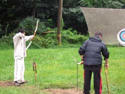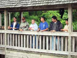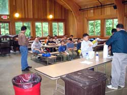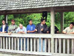 | 09/12-14/03 - Alpine Scout Camp The first overnight of the 2003-2004 scouting year. The goal was to get everyone back into the normal flow of the scout year after a very hectic but exciting summer. Advancements was key to the weekend's program, even with the rain. The climbing wall was closed, but the scouts got to test a soda making machine in the dining hall. The archery range was open in between the rain showers. The scouts were creative, as they waited out the rain delays, on the fort's parapet. |