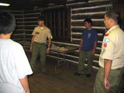 sitting around the fireplace. Key requirements accomplished on trip, First Class cooking.