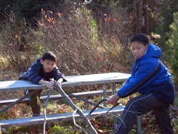 themselves with a game of Hackey Sack. Saturday - Food shopping, collecting wood and