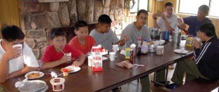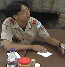 | 9/7, Saturday: After a quick breakfast and cleanup the task at hand, planning the 2002-2003 Calendar, begins. As the Junior Leaders and Adults plan, the Scouts are taught skills needed for their Tenderfoot rank. The ratio of instructors to student is 2.3 to 1? |