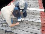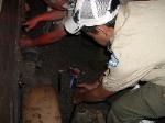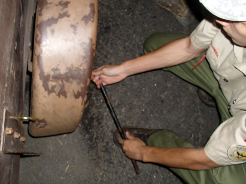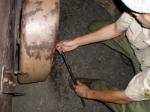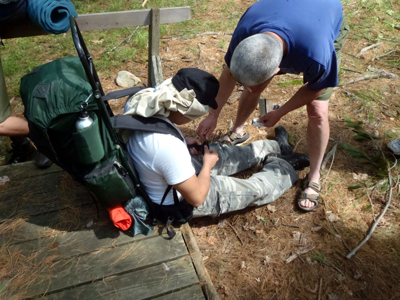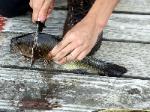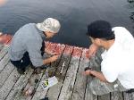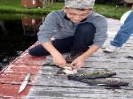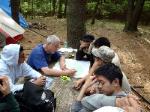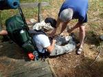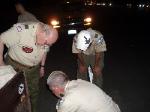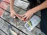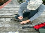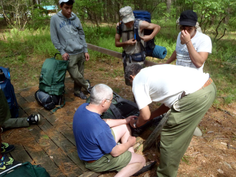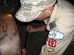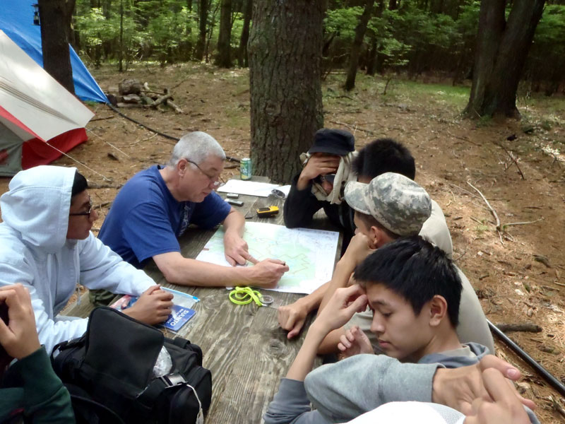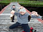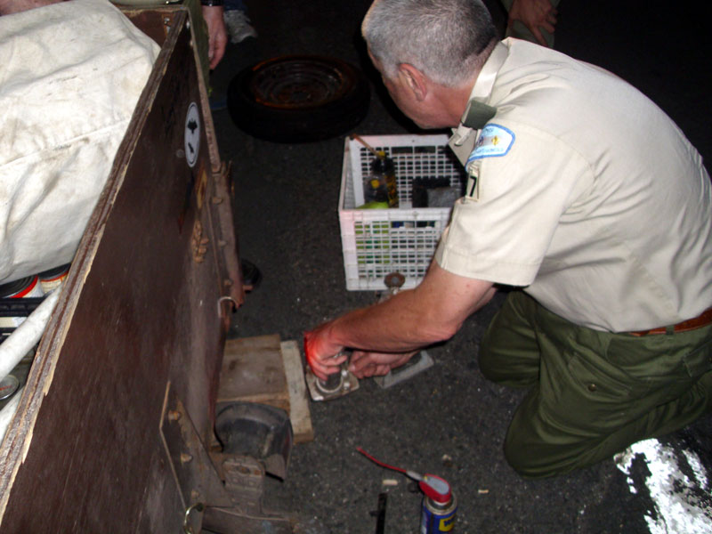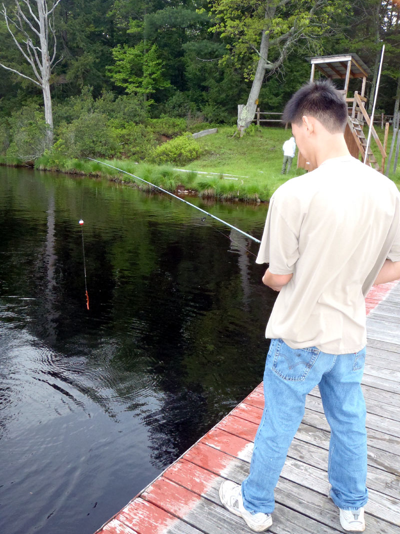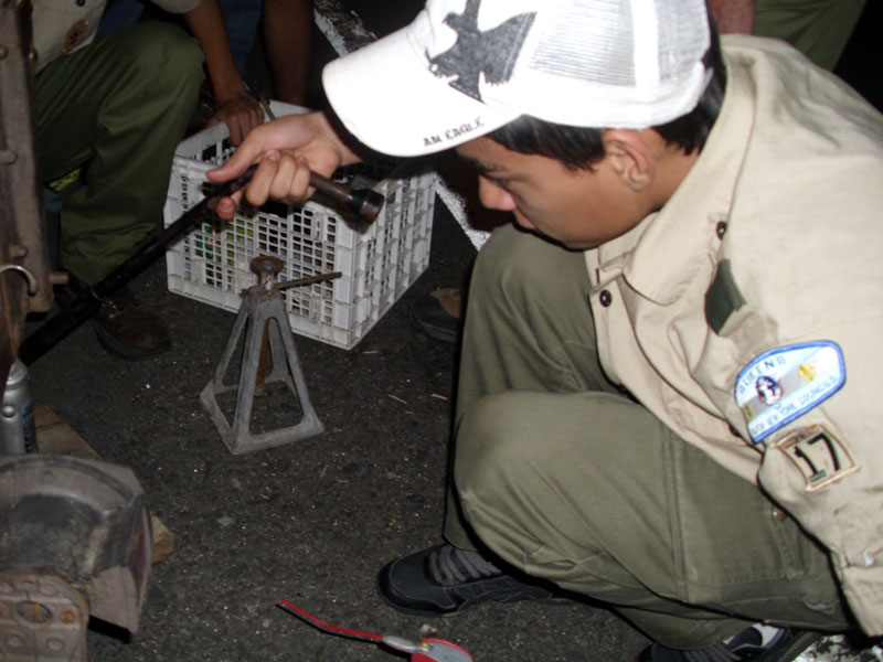 | Changing a flat on the trailer makes for a late camp set up, yet the scouts were early riser for the fish and breakfast |