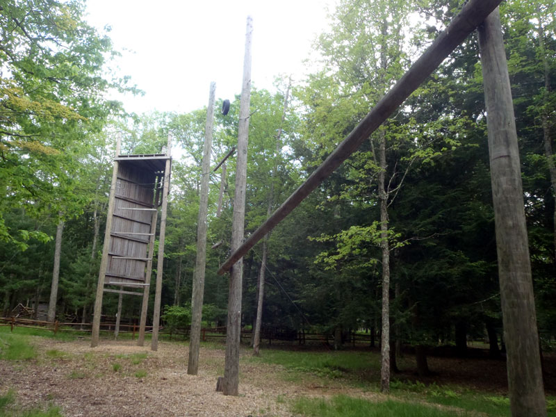 | A view of the High Cope Course, the Amphitheater, the Commissary, the Handicraft Lodge, the Pool and then on to the Lake |