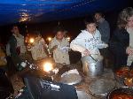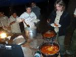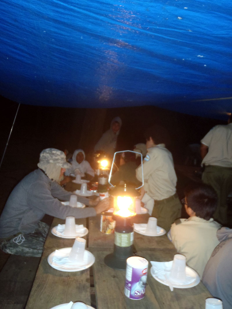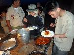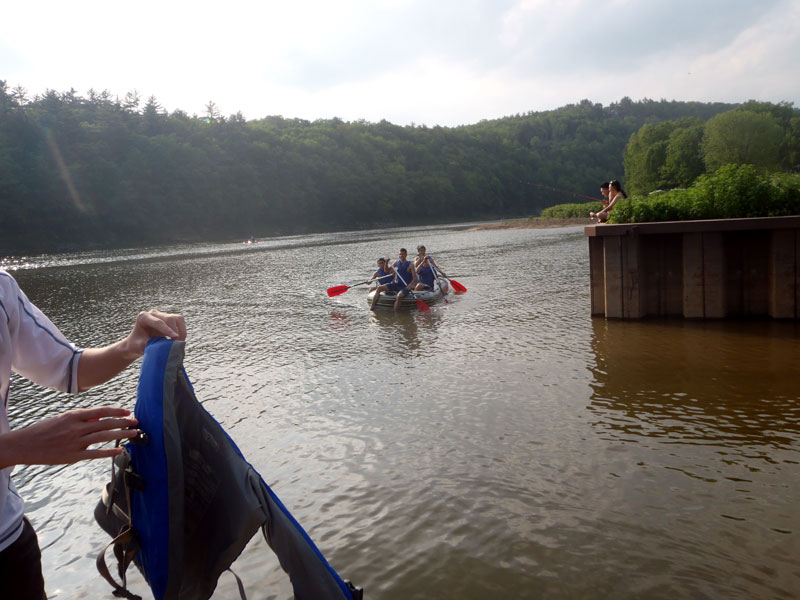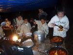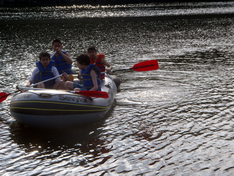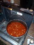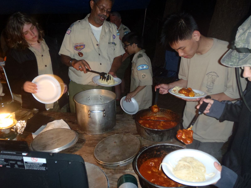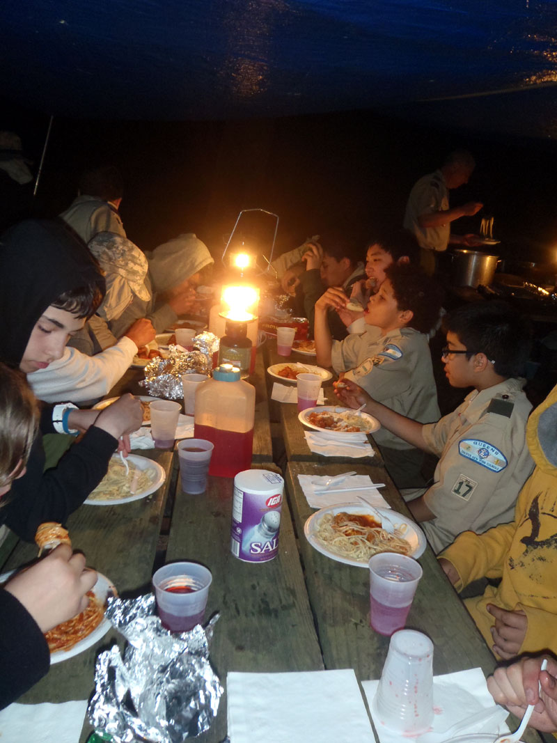 A very hearty dinner after a long day in the sun on the river, spicy and sweet sausages with spaghetti, meat sauce and garlic bread