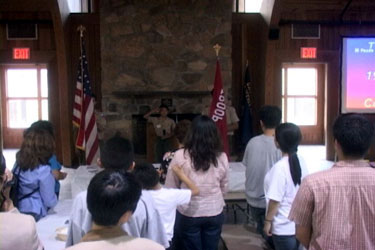| " Color guards front and center " " Pledge... On my honor... A scout is trustworthy... " |