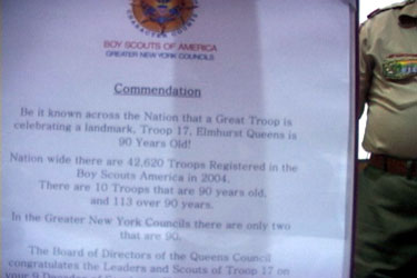 | The presentation of the Greater New York Councils' Commendation to the Troop on the 90 years |
