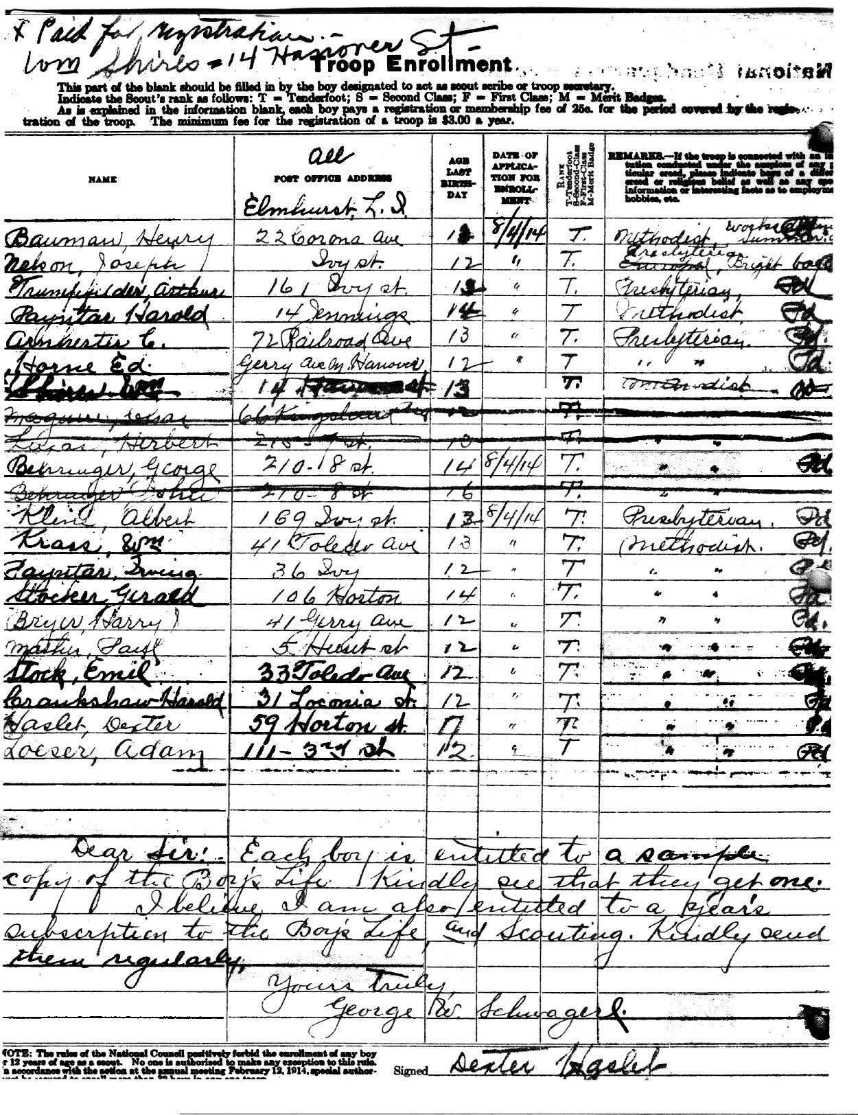 8.27.14 Newtown Register Article - Original Charter Application page 1 and 2 - Original Boy scout Roster