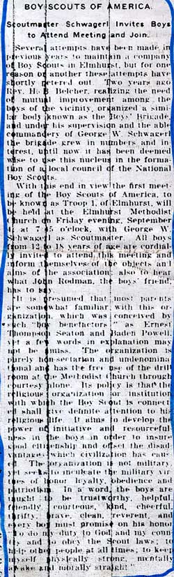 | August 27, 1914 Newtown Register: SM Schwargerl invites boys to attend meeting and join > |