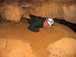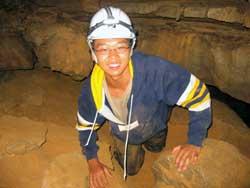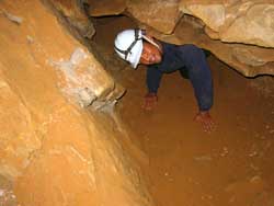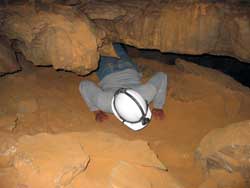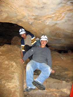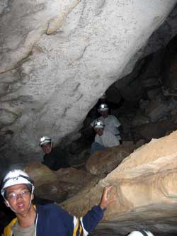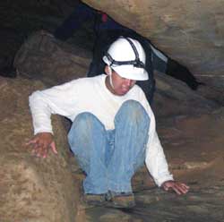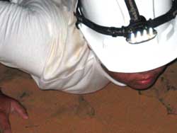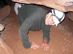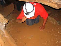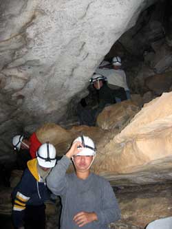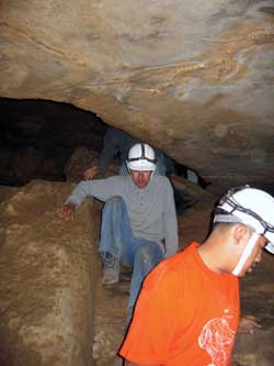 | Day 6 - Continued - Mammoth Cave, KY Unlike past cave exploring experiences, the NPS provides the helmets, which you get to keep, and lends the helmet lights. Our crew could have done the 6.5 hour "Wild Cave Tour". However, the minimum age is sixteen. Still 250 feet and 4 hours underground was satisfying for all. Maximum of 20 people on the "Introduction To Caving Tour" and only two tours a day. |