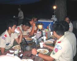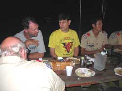 | Day 12 - Continued - Rocky Mount, NC The main purpose of this stop is to reminisce with Charlie an alumni of Troop 17 from the 60's - 70's. He is working with Troop 5 of Rocky Mount, NC. He brought Tony the scoutmaster of Troop 5 along with him. Good stories, good meal, a preliminary proposal for three Troops to meet in Washington DC next spring. (Elmhurst, NY; Rocky Mount, NC; and California) all individually celebrating a distinct milestone anniversary for their respective Troops. Oh yeah! words of wisdom |