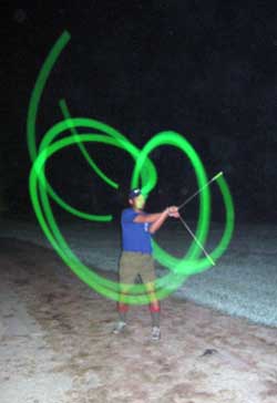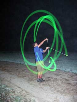 | Some late night amusement with glow sticks. Also, the daily ritual of breaking camp, eating breakfast, and packing the vehicles. |
