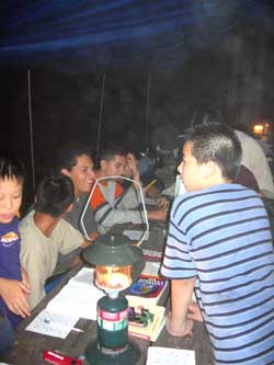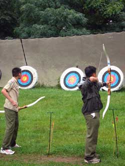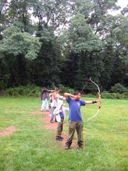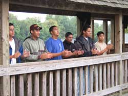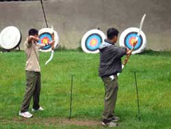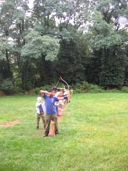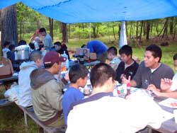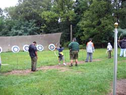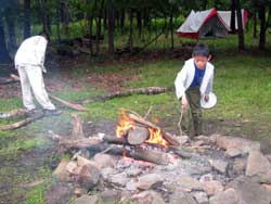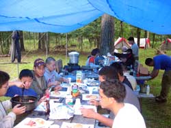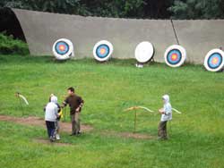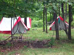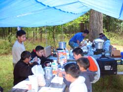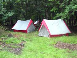 | 09/12-14/03 - Alpine Scout Camp The first overnight of the 2003-2004 scouting year. The goal was to get everyone back into the normal flow of the scout year after a very hectic but exciting summer. Advancements was key to the weekend's program, even with the rain. The climbing wall was closed, but the scouts got to test a soda making machine in the dining hall. The archery range was open in between the rain showers. The scouts were creative, as they waited out the rain delays, on the fort's parapet. |