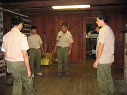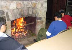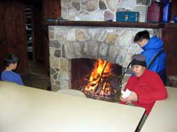 sitting around the fireplace. Key requirements accomplished on trip, First Class cooking.
