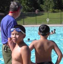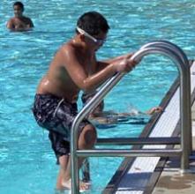 | After lunch, planning resumed, very seriously since we were near the end. The afternoon diversions were Frisby and the Scout's favorite activity, swimming in a large nearly empty pool. Also more requirements passed. |
