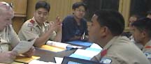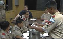 | 9/7, Saturday: After a quick breakfast and cleanup the task at hand, planning the 2002-2003 Calendar, begins. As the Junior Leaders and Adults plan, the Scouts are taught skills needed for their Tenderfoot rank. The ratio of instructors to student is 2.3 to 1? |