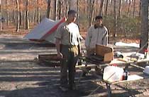 | Belleplain State Forest, 14600 acres This trip was planned for southern New Jersey to take advantage of warmer weather. We could not have planned it better. We enjoyed a spectacular weekend of sun and fun. The main purpose of the trip was rank advancement. Second class tenting, knife and axe, fire building and a five mile hike were all accomplished. On Sunday we were able to take a closer look at the seashore as well. |