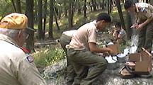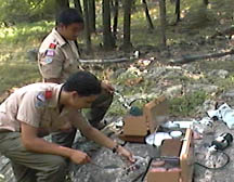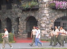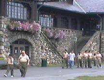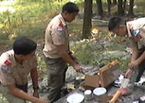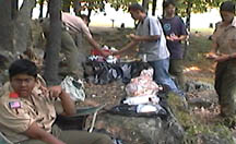 | Bear Mountain/Harriman State Park, 08/17/02 Even with heavy traffic,well. The scouts had a chance to swim, and rival among the older members, showing off their newly found skill. Once we got there, we went on a short hike around the area. We stopped along the way to point out various trees that the scouts would later have to identify for the Tree Identification requirement. We walked around the wildlife center, and saw many of America's wild and endangered creatures, including foxes, black bears, bald eagle, rattle snakes, many birds, and a lot of other wild critters. Lunch took a little longer than usual, but it was all worth it, after resting our tired feet, we satisfied our hungry stomachs with the normal American lunch of hamburgers and hotdogs. After lunch we played various sports, of football, catch, and swimming. The younger members were able to get a chance to learn the necessary skills of water sports. We all had fun splashing and swimming in the waist high shorline of lake Welch.. We all crawled out of the water, tired and weary, and slept on the long drive home. |